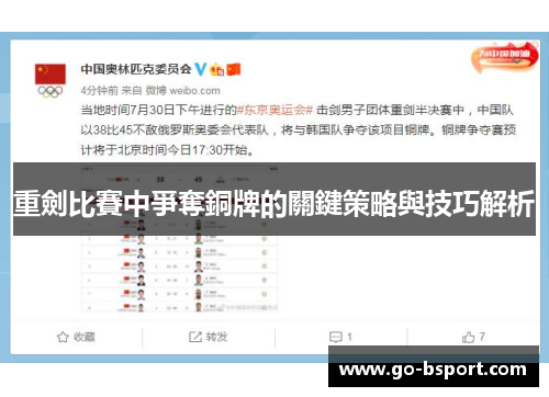 重劍比賽中爭奪銅牌的關鍵策略與技巧解析